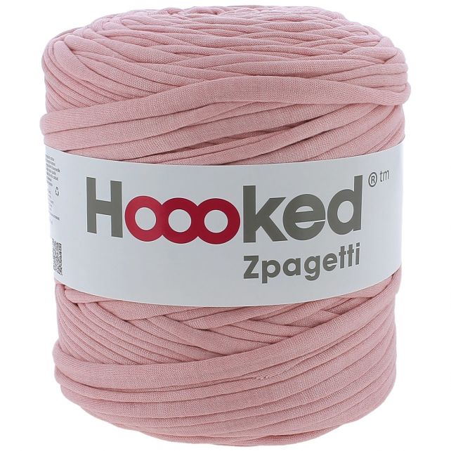 Nuestro Hoooked Zpagetti original es un ovillo gigante de 120 metros (700 gr) de hilo grueso de camiseta upcycled, perfecto para proyectos DIY rápidos y resistentes, como pufs, bolsos, cojines, alfombras, cestas, etc.