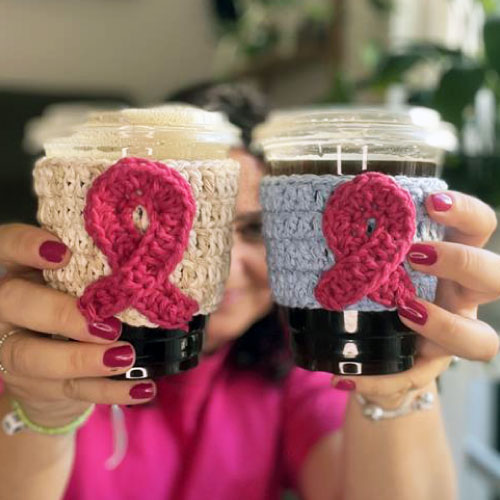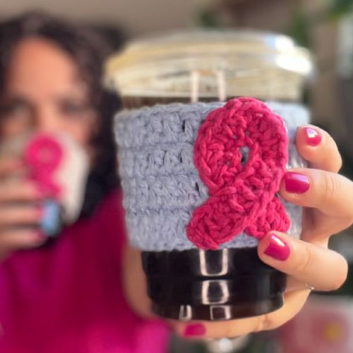 Crocheter pour une cause : Célébrez Octobre Rose avec un modèle gratuit de chauffe-tasse
